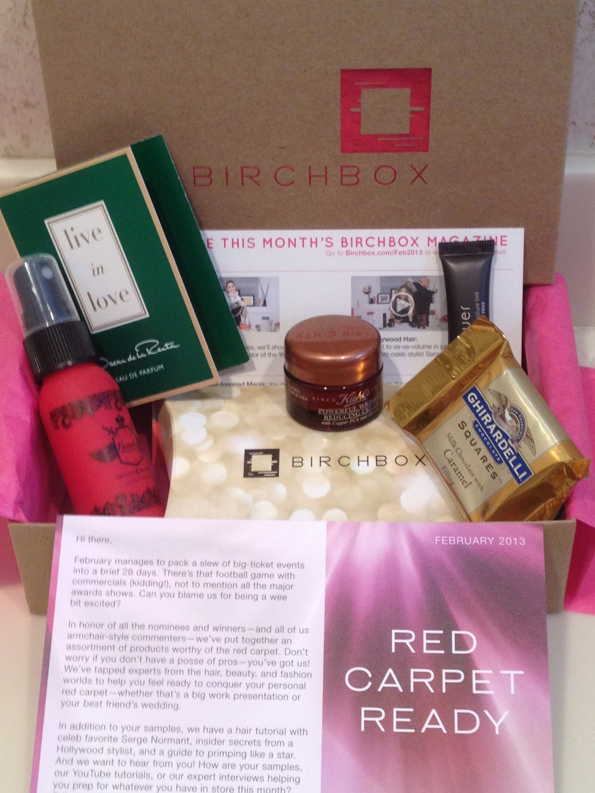 The February 2013 Birchbox, the "Red Carpet Ready" edition, is inspired by all the major award shows that February brings, not to mention that lovely holiday smack dab in the middle of the month. Here is some insight into the picks that Katia, Hayley and the Birchbox team packed up this month.